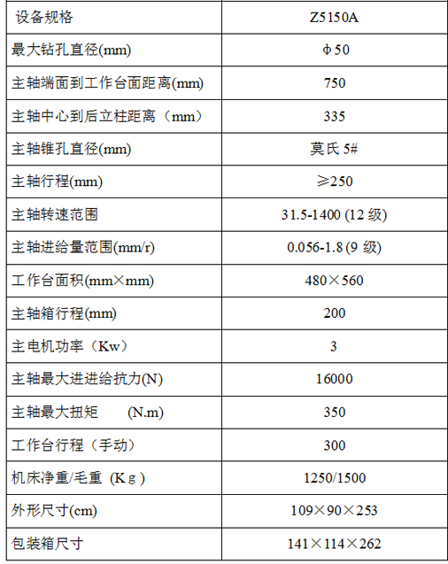 設(shè)備規(guī)格及主要技術(shù)參數(shù):