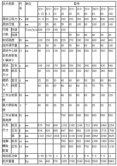 名稱:J23系列開式可傾壓力機